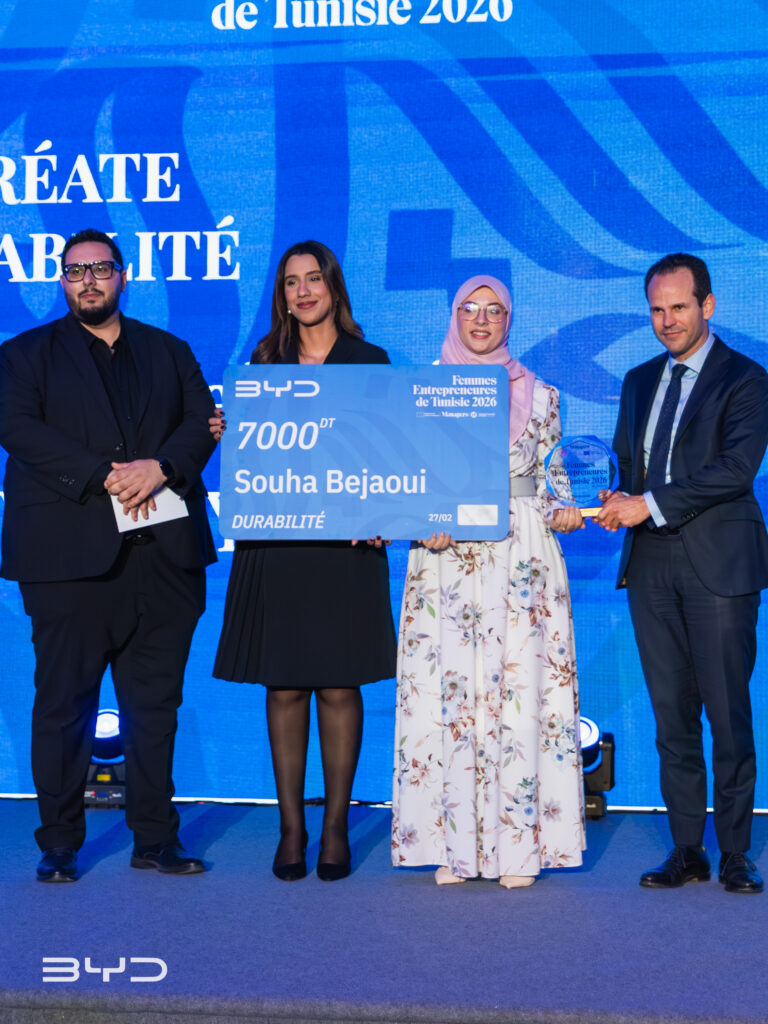 علامة السيارات BYD تونس تكرم ريادة الأعمال النسائية المستدامة: سُهى بجاوي، مؤسسة ProVerdy، تفوز بجائزة BYD – الاستدامة